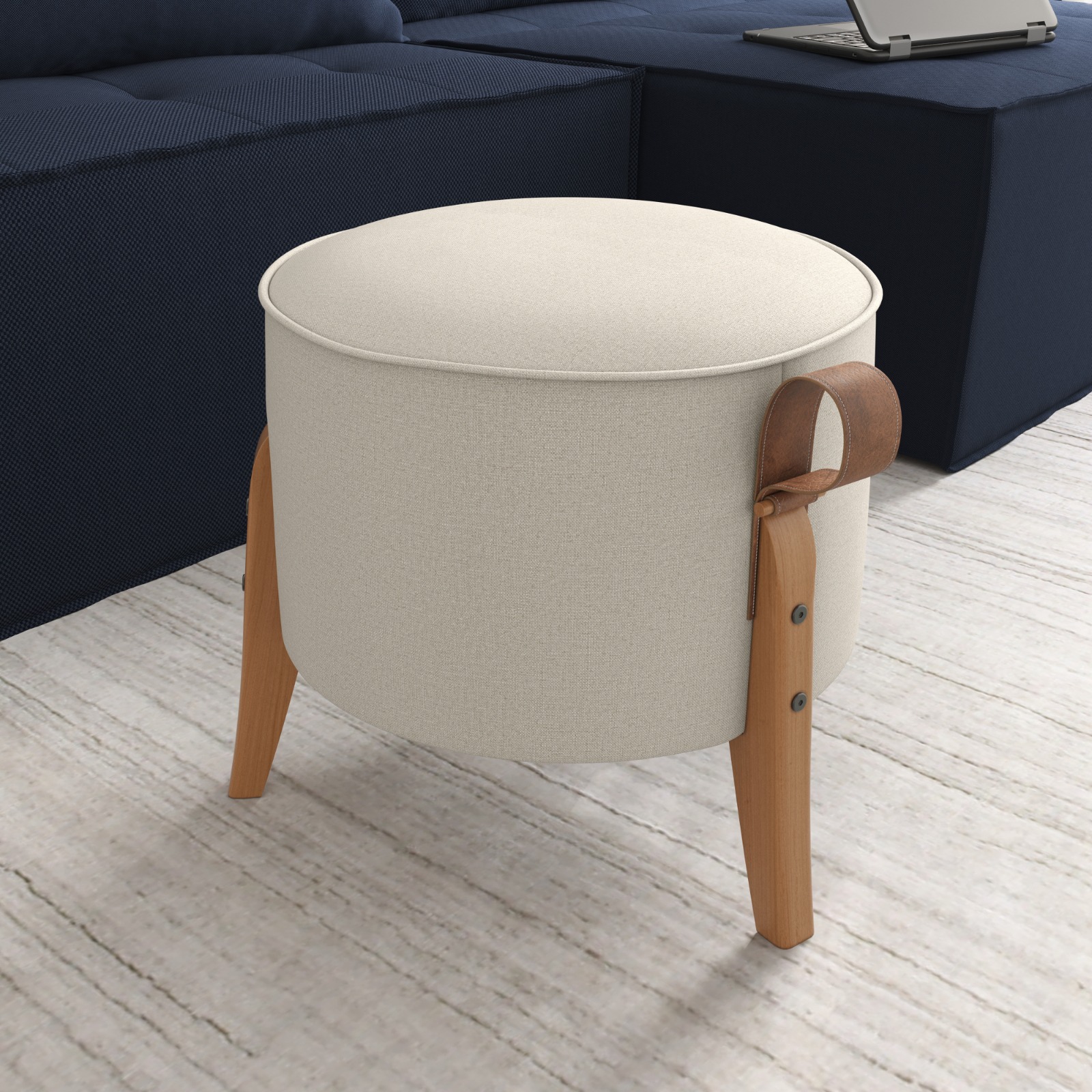 - O Puff Roma em azul-marinho pode ser um ponto de destaque em ambientes neutros ou claros.